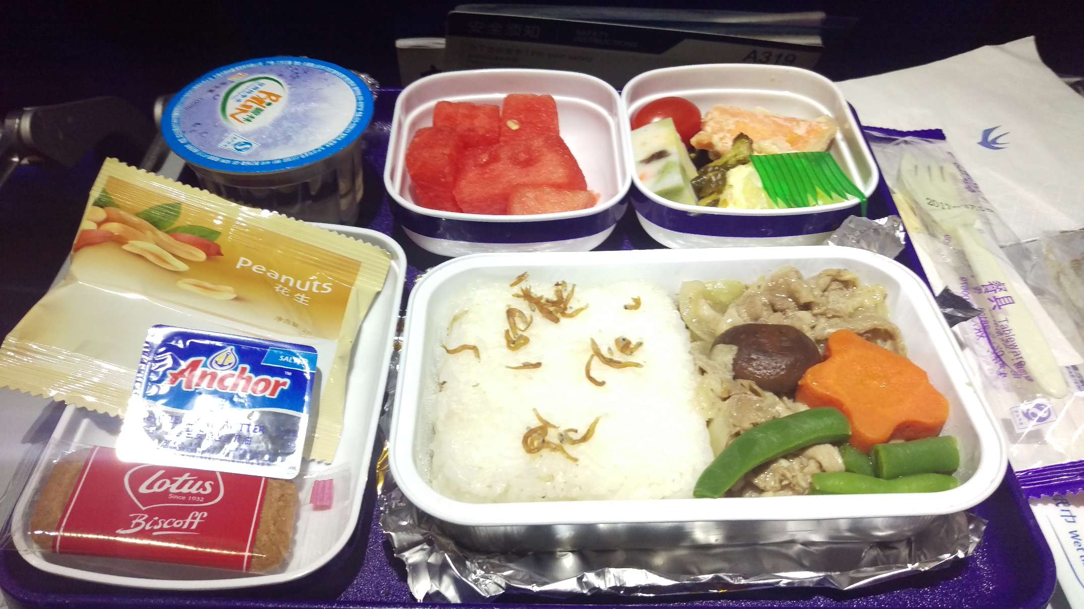 ちなみに、今回の往復で出てきたライスの機内食はこんな感じでした。