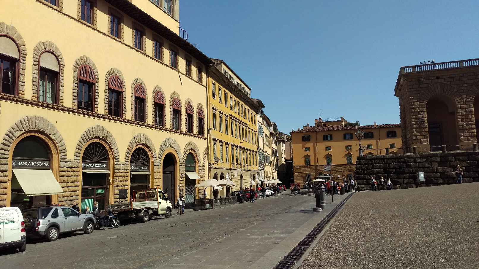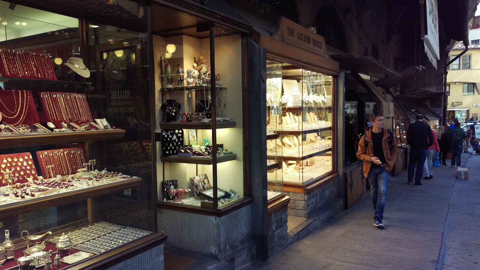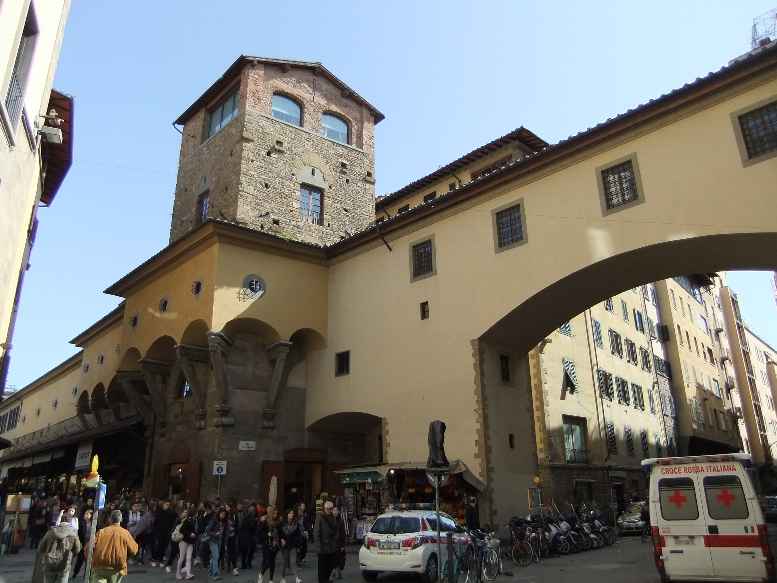 フィレンツェの街は、狭い道と古いながらも背の高い建物との組み合わせが、良い雰囲気を醸し出しています。橋の上に貴金属店の並ぶポンテ・ヴェッキオは