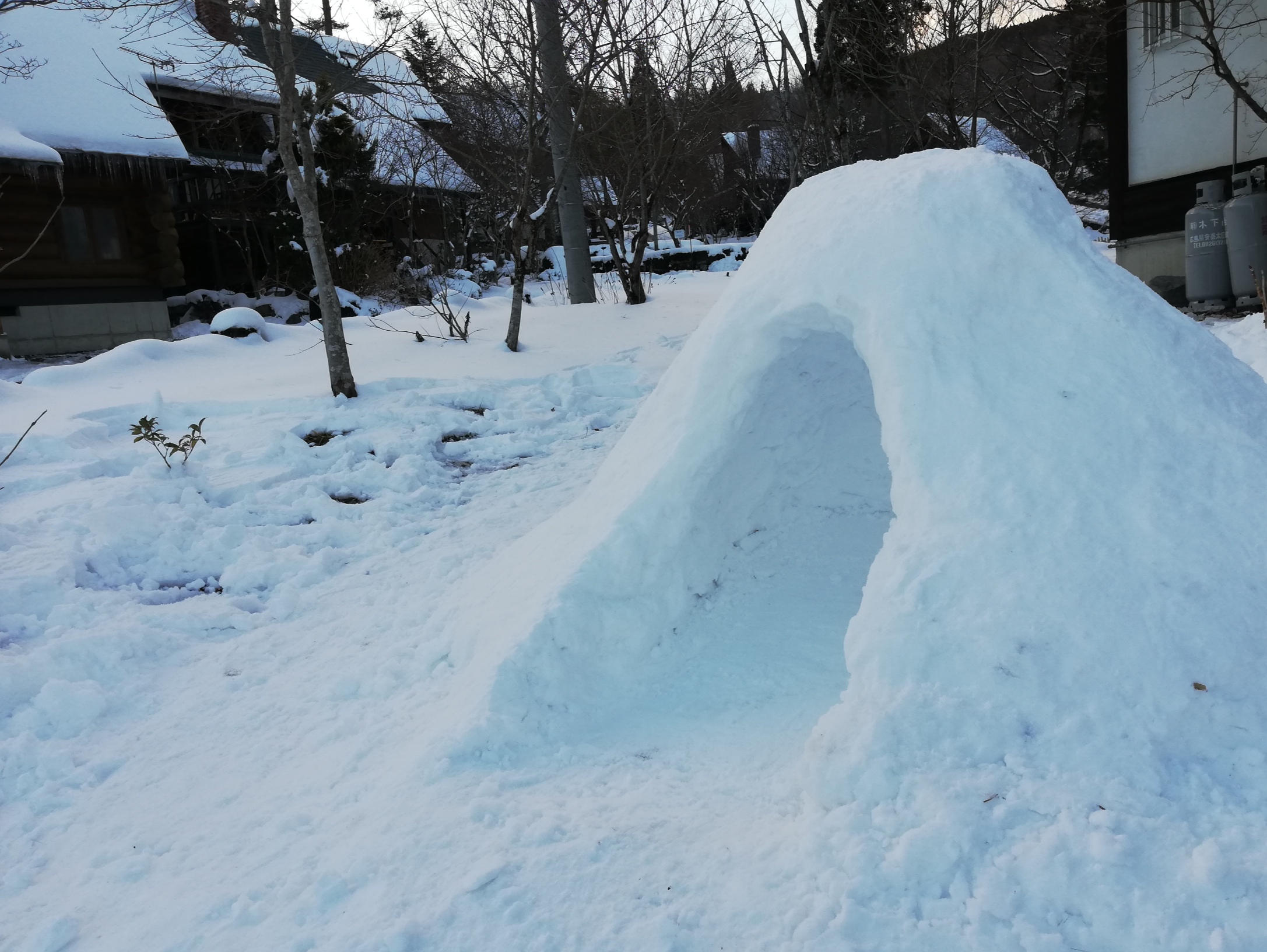 しばらく天気が良かったので、道の雪は溶けており、日当たりの良い山小屋の雪もほとんど溶けていました。