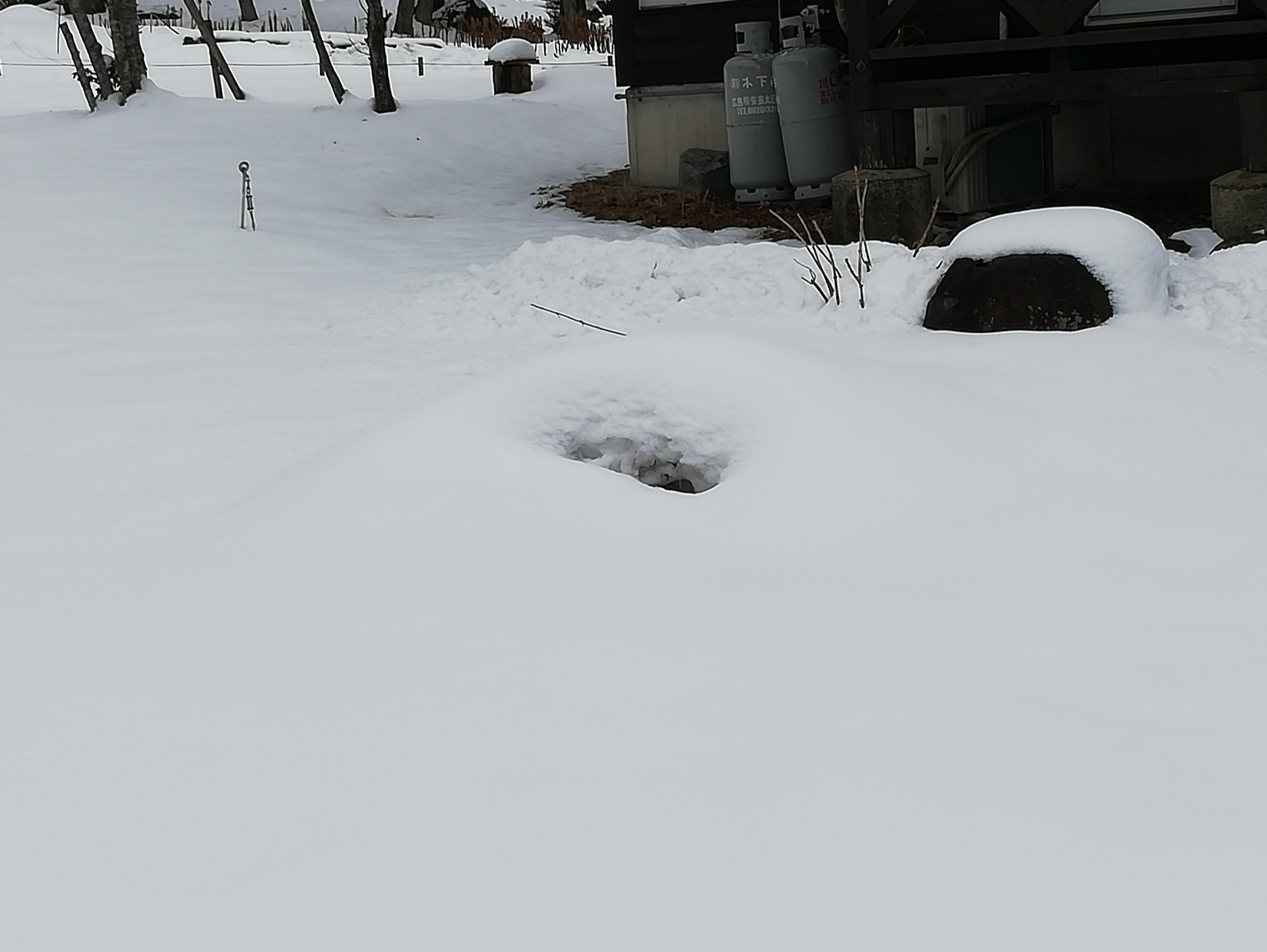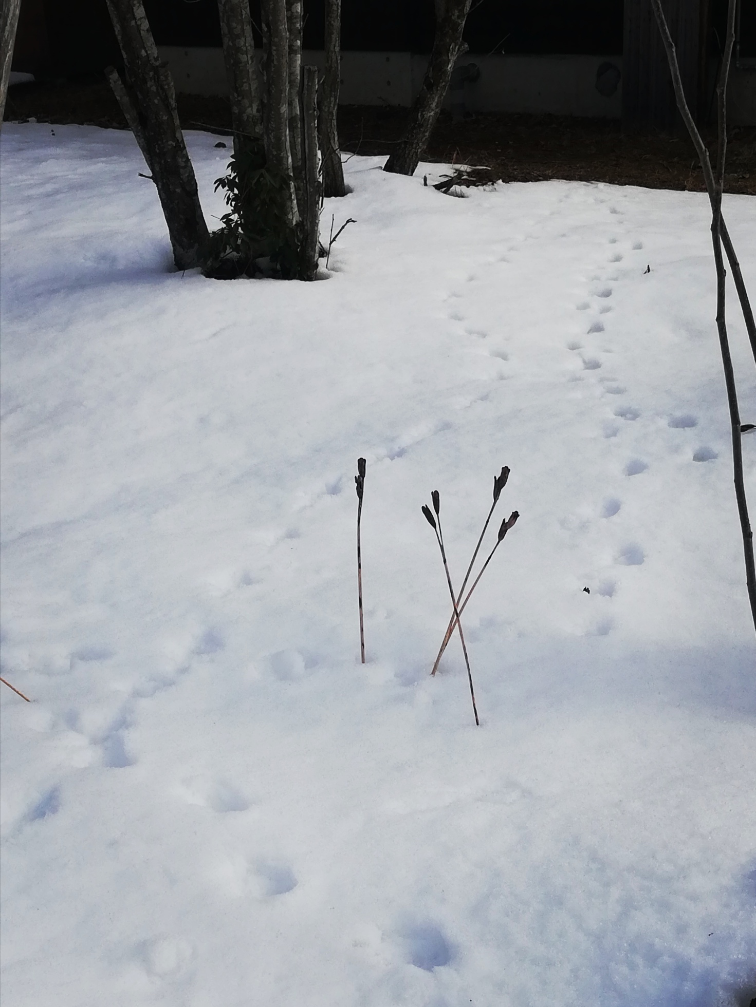 しかし、庭の地面はなかなか溶けておらず、雪が残っています。